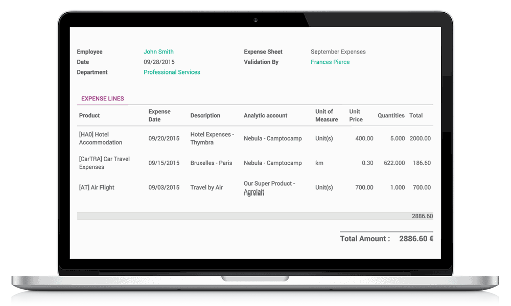 Manage your employees' daily expenses. Whether it's travel expenses or any other costs, access all your employees’ fee notes and complete, validate or refuse them. No need to download any specialized software or program to manage expenses - everything can be done directly in the app!